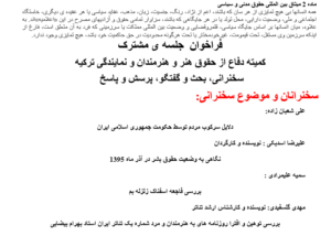 فراخوان جلسه مشترک نمایندگی ترکیه و کمیته دفاع از حقوق هنر و هنرمندان