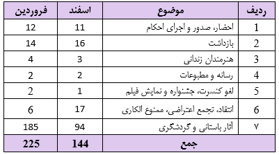 این گزارشات آماری از میان بیش از ۲۲۵ خبر در طول فروردین ماه ۱۴۰۴ تهیه شده است.
