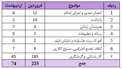 با توجه به حجم بالای سانسور و عدم درج کلیه خبرهای مربوط به نقض حقوق هنرمندان ، این گزارش تنها ۲۰٪ خبرهای موجود در کشور را بازتاب خواهد داد.