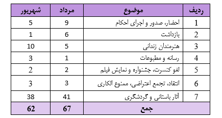 گزارش نقض حقوق هنر و هنرمندان در شهریورماه ۱۴۰۴