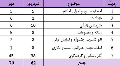 این گزارشات آماری از میان بیش از ۷۰ خبر در طول مهر ماه ۱۴۰۴ تهیه شده است.