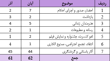 این گزارشات آماری از میان بیش از ۶۱ خبر در طول آذر ماه ۱۴۰۴ تهیه شده است.
