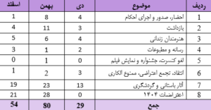 این گزارشات آماری از میان بیش از۱۶۳خبر در طول دی و بهمن و اسفند ماه ۱۴۰۴ تهیه شده است.