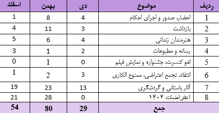 گزارش نقض ۳ ماهه حقوق هنر و هنرمند (دی بهمن اسفند) ۱۴۰۴