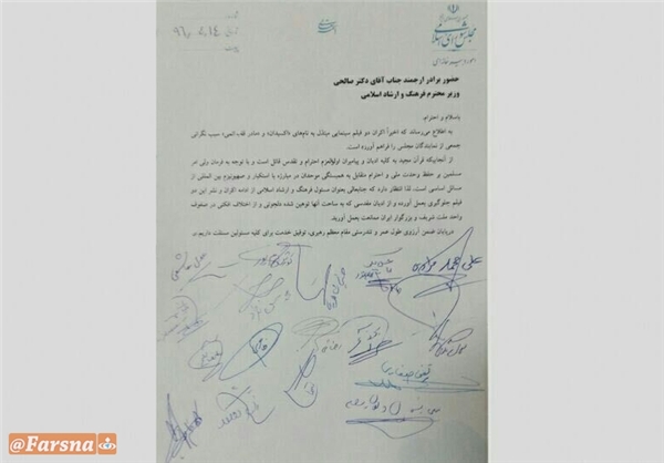 در ادامه این نامه آمده است: “انتظار میرود که جنابعالی به عنوان مسئول فرهنگ و ارشاد اسلامی از ادامه اکران و نشر این دو فیلم جلوگیری به عمل آورده و از ادیان مقدسی که به ساحت آنها توهین شده، دلجویی و از اختلافافکنی در صفوف واحد ملت شریف و بزرگوار ایران ممانعت به عمل آورید”.